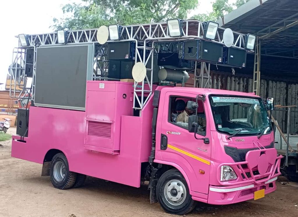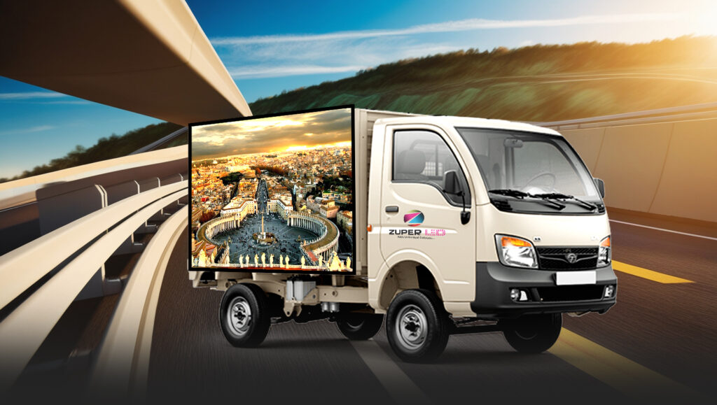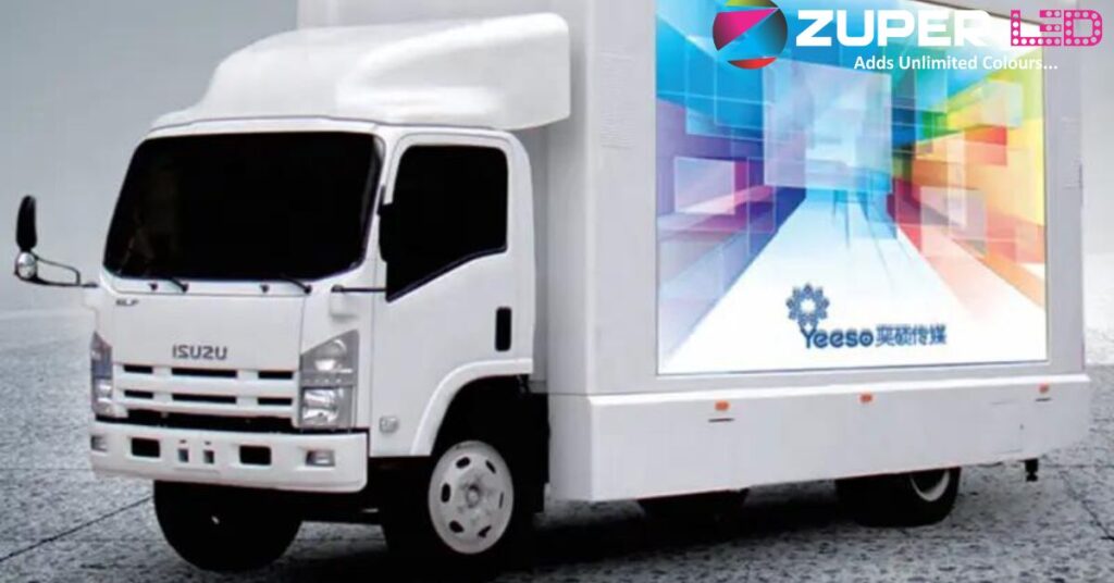 A tri-sided LED Mobile Van includes LED screens on both sides plus a rear LED panel, creating a dynamic 3-side display.